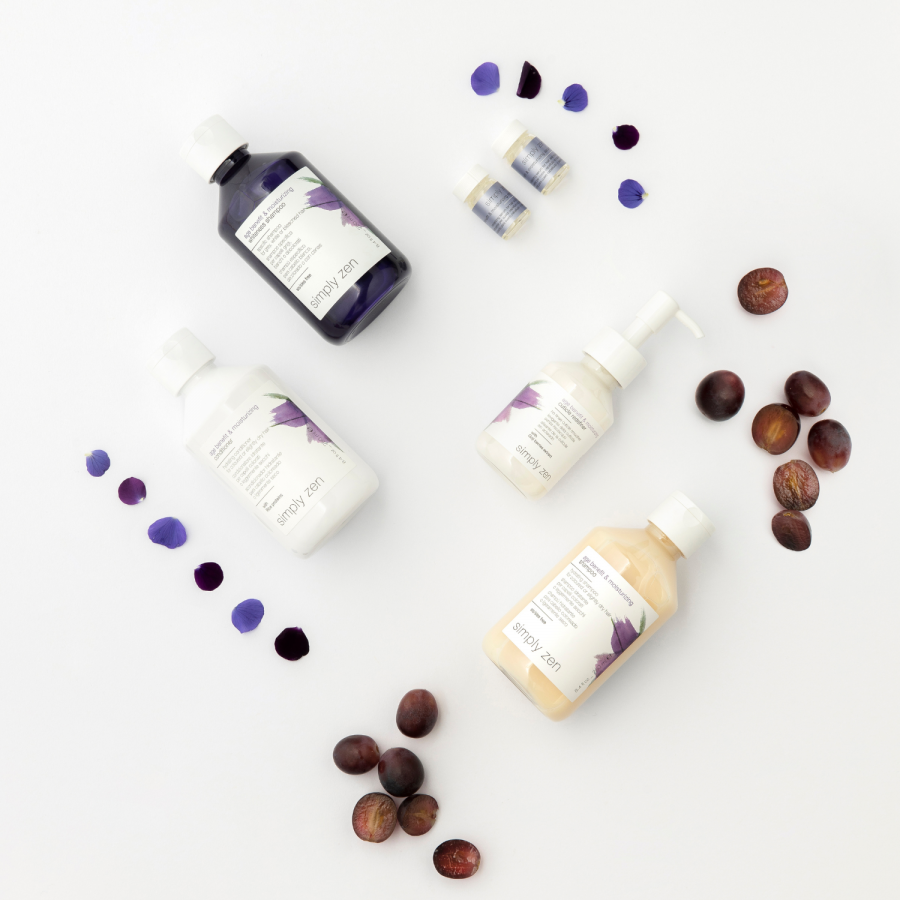 - olej z hroznových jadier, antioxidant s renomovanými účinkami proti starnutiu, bohatý na zmäkčujúce triglyceridy, s vyživujúcim účinkom na pokožku hlavy a vlasy