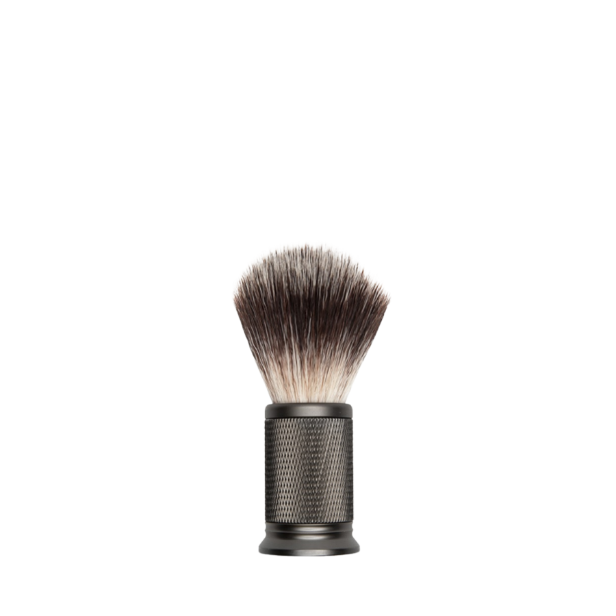 Štetec na holenie s vintage s antracitovou rukoväťou a kovovými detailmi.