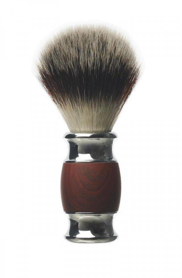 Robustný a vintage drevený štetec na holenie s rukoväťou z dreva a ocele.