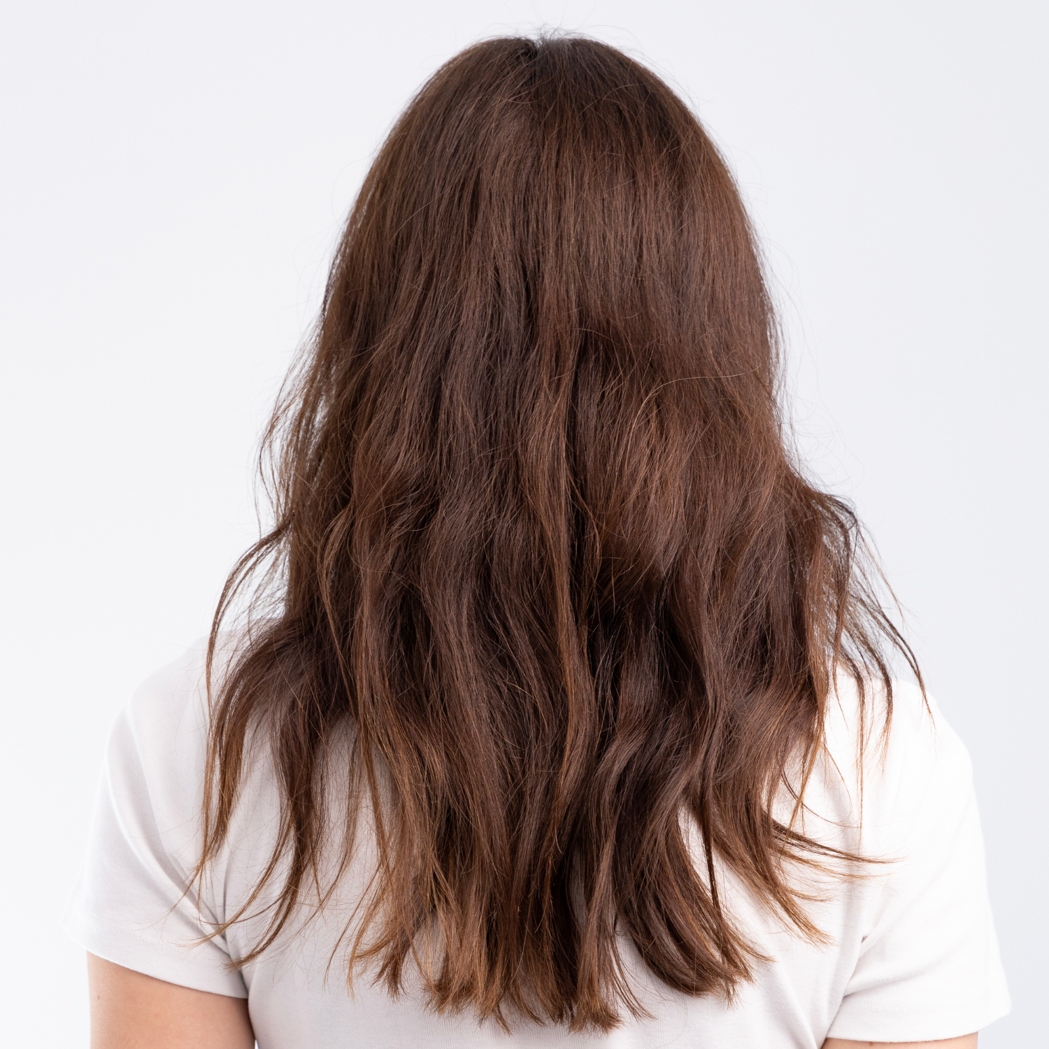 1️⃣ Naneste na umyté uterákom vysušené vlasy, sústreďte sa na dĺžky a končeky.