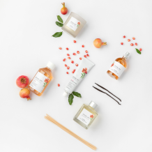 Obohatený o rastlinné extrakty, bambucké maslo a arganový, jojobový a ryžový olej. Zanecháva pokožku jemnú, hydratovanú a hebkú s príjemnou sviežou, ovocnou vôňou granátového jablka.